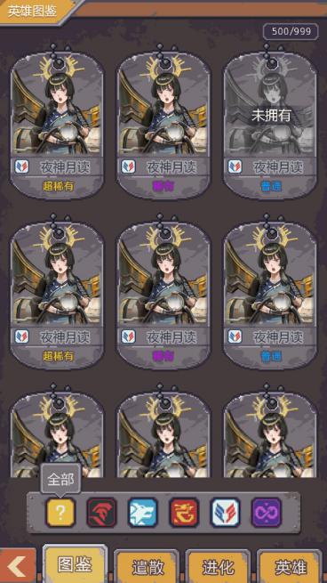 图鉴系统:会展示所有英雄的立绘