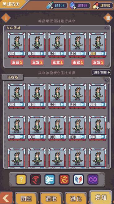 进化:英雄的进化就在这里进行啦,舰长们心水哪个英雄就进化哪个英雄啦~(进阶的特效简直酷炫、拽)